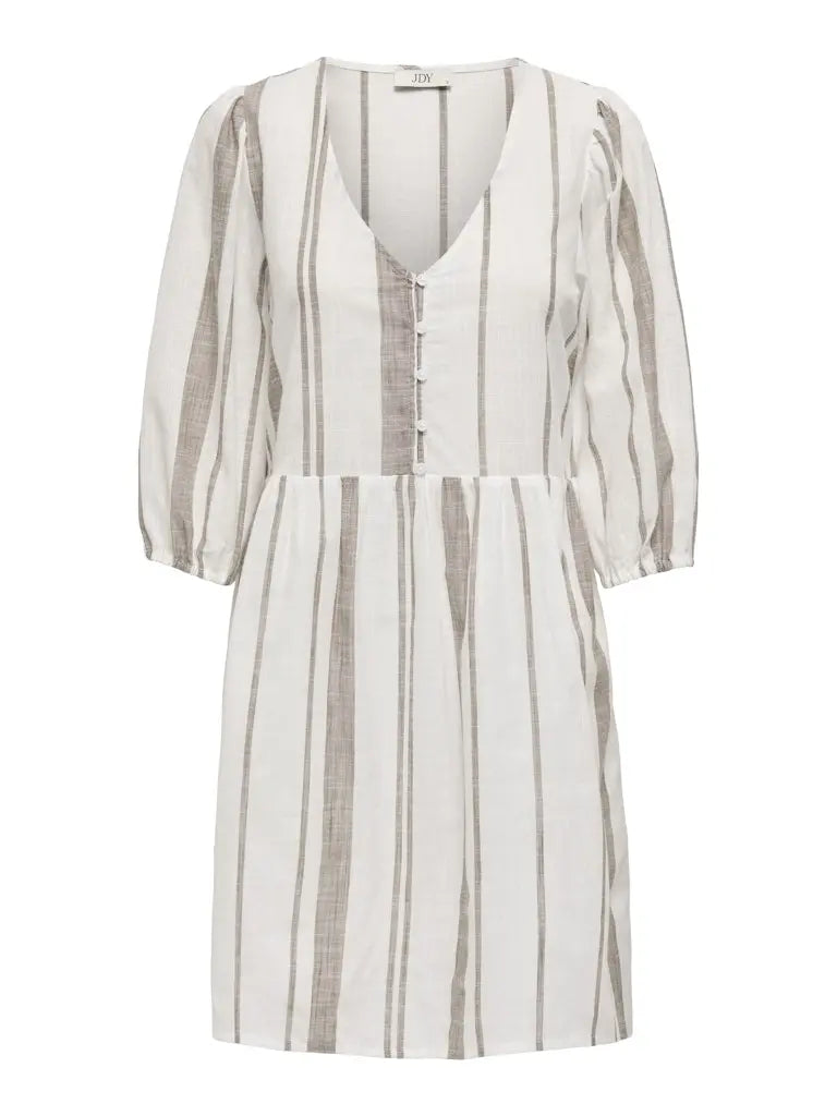 Flott sommerkjole fra JDY med sommerslige striper, korte ermer og knapping foran. Blir fort en favoritt i sommer.